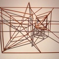 When he attempted to realize the principle of projective geometry in modellike objects in the 1970s and 1980s, Megyik chose to allow the same level of significance to the projected image, the lines of projection and the plane. He made photograms of his three-dimensional objects, or else made his photograms the starting points of three-dimensional stick constructs.