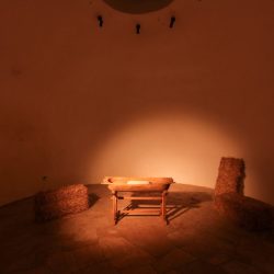 As a result, I hope that the objects, when received, will be assembled into a complex reading, through the threads that connect them on several levels, in such a way that they will be continuously led back to each other, moving from one to the next, through the interweaving of different solutions and layers of content. In addition to common content, these include light, solar discs, landscape, liquids (water and oil), horizontal and vertical axes, different woods, peasant craft techniques, wooden pots, wheat, straw, sounds and noises, etc.