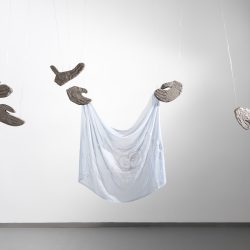 In addition to the two installations, several graphic works – drawings and watercolors – are also included in the new exhibition. The pencil drawings on display are all titled Body. The dried plants (cactus, beetroot, okra) on the sheets are delicate, sensual, natural evocations of passing, which, in light of which, the idea of return and its gentle mystery evoked in the spatial installations unfold before us as an even more sensual and profound aesthetic and philosophical experience.