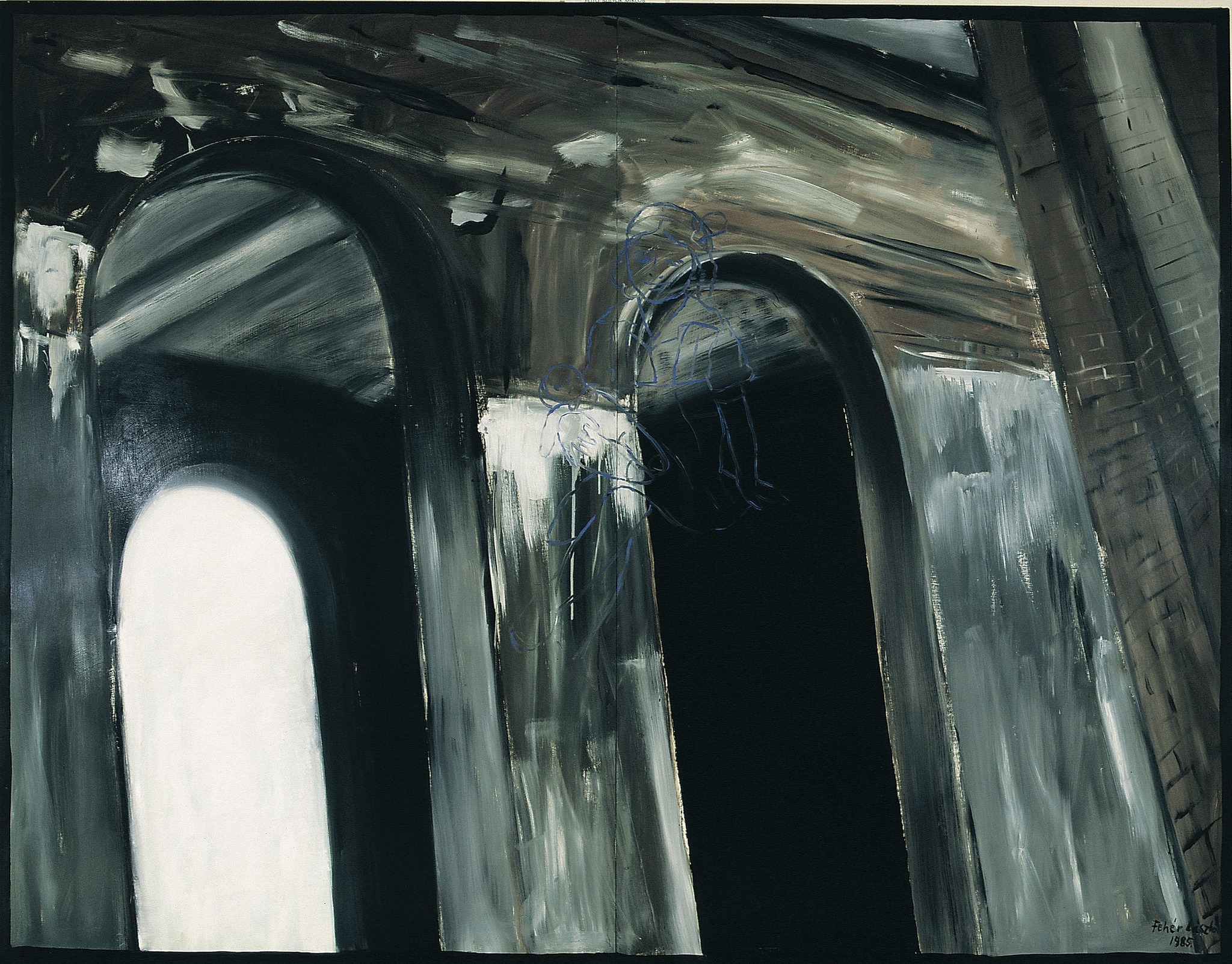 The exhibition presents a selection of paintings by László Fehér created in the 1980s. This decade marks a defining period in Fehér’s oeuvre, when personal memory, collective historical experience, and— in certain works—photographic visual sources coalesce into a distinctive painterly language. The often blurred, translucent figures reflect the fragmentary nature of images of the past and of memory itself. The compositions produced during this period evoke both the intimate space of personal recollection and the collective experience of history.