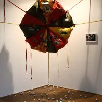 A kiállításon megjelenő, erősen asszociatív gondolati halmazok egymást áthatva, megerősítve jelennek meg, szabad értelmezési területet hagyva a látogatónak.