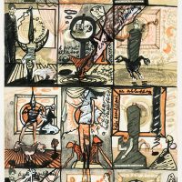 A fikcióval, a keretekkel, a síkvetületekkel, a képregény formával és az irodalmi szerepekkel való játék tartja életben művészetének mélyről fakadó teatralitását. A színek, terek, méretek, formák intenzív és szenvedélyes ellenpontozása révén művei szinte mágneses vonzerővel hatnak a nézőre. Ehhez kapcsolódik a kiállítás egyik érdekes eleme is: a több mint húsz éven át folytatott ünnepi játékai, a Dzsan-panoptikumok monumentális színpadának és jelmezegyüttesének bemutatása.