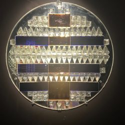 E gondolkodás egyik kiemelkedő megvalósulása az 1976-ban a Fővárosi Bábszínház előcsarnokába készült fali üvegplasztika, mely az acb Bak Imre space tereiben láthatóak. A nagyméretű, építészeti léptékű mű nem önálló tárgyként, hanem a tér szerves részeként jött létre. Domborított és sík üvegfelületek, különböző struktúrák és fényforrások együttese hoz létre finoman pulzáló, változó képet. A kompozíció nem illusztrál, nem narratív: nem a bábszínházi előadások világát jeleníti meg, hanem a várakozás idejét alakítja át érzéki tapasztalattá. A mű egyszerre irányítja a tekintetet és oldja a tér feszültségét, miközben játékos, mégis fegyelmezett rendbe szervezi az optikai hatásokat. Z. Gács következetesen vallta munkássága során, hogy a műalkotás feladata nem az, hogy elvonatkoztasson a valóságtól, hanem hogy új módon tanítson látni.