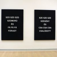 A legfrisebb munkák, köztük a Törvény szerint sorozat (2010), Az Igazság szabaddá tesz (2010) vagy a Por a modernizmuson (2010) mellett ismét láthatók lesznek korábbi installációi, a Remény szakmunkában (1994), és a Magyarországon először kiállított Én nem szeretem a pesszimizmust (1992) című munka.