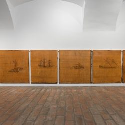 Nunkovics Róbert graffitisként ment a Petőfi Laktanyába, de a laktanya egyik klubszobájában Jakab László tiszthelyettes pirográfiáival találkozva, firkász identitása újabb rétegekkel bővült. A pusztulásra ítélt épületből kimentett pirográfiák a Flottilla hajóit és vízi jeleneteket ábrázolnak allegorikus alakokkal. Készítőjük nem szignálta az alkotásokat, nevét katonatársaitól tudjuk. Azzal, hogy elhozta őket a laktanyából, Nunkovics a fennmaradásukat biztosította és egyben a Flottilla történetének továbbvitelét egy olyan közeg számára, akik vélhetően még nem hallottak róla, vagy ha igen, a benne szereplő katonákkal, a hadtest történetébe ágyazódó személyes epizódokkal akkor sem találkoztak. A képek lefeszítése a falról nem a graffitis mozdulata, hanem az archivátoré, a felülírás, kiegészítés vagy kommentálás gyakorlata helyett a feltárás tere nyílt meg vele.