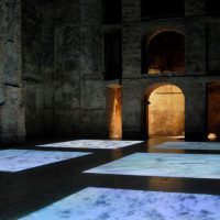 Teljesül az ember ősi vágya, saját méretén túl, fentről, az „űrből” olvasható életjelet adni. Fény lesz a szóból, a betűk illuminálják az apszis hatalmas kupoláját.