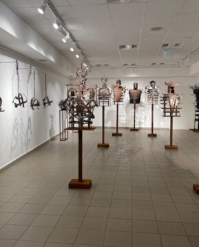 A Vasra verve című kiállítás különös szobrai húsbavágó kérdéseket feszegetnek, groteszk képet festve a mit sem változó emberi természetről. A büsztök és maszkok természetesen kitalált alakok, mindennemű egyezésük a mai valósággal csupán a véletlen műve.