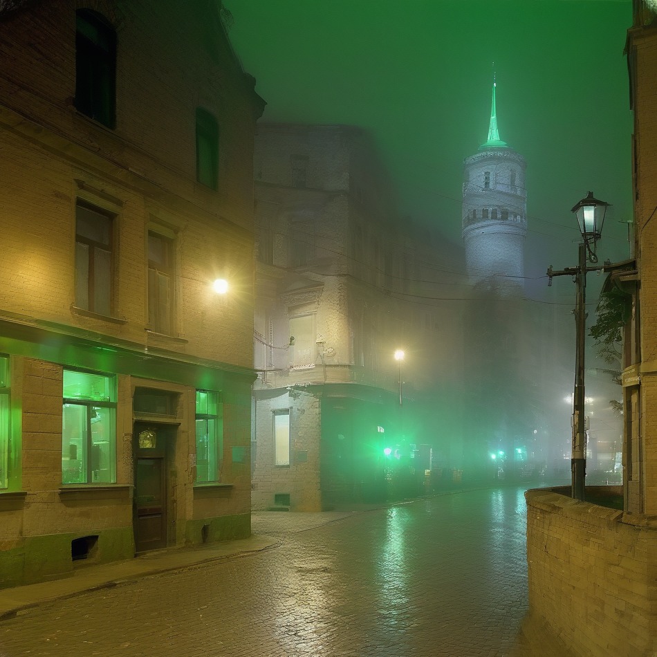 A fiktív utcai jelenetek sárga-zöld éjjeli, infravörös felvételekre emlékeztető fénybe burkolóznak. Régi homlokzatok, utcaszerkezetek – de valami nem stimmel. Néha a perspektíva a semmibe vezet, az egymásba olvadó építészeti elemek abszurddá válnak. A látogató alászáll a tudatalattiba, életünk eredetéhez, a gyerekkorunkba, ami azután egész életünkre hat.
