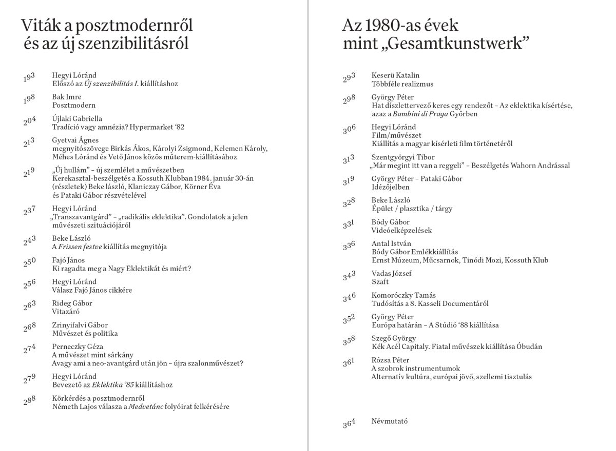 A kiadvány arra tesz kísérletet, hogy tágabb történeti folyamatokba ágyazva, forrásszövegeken keresztül mutassa be a korszak művészeti vitáit a posztmodernről, az új festészetről, a szocializmusról és a műtárgypiac működéséről a korabeli Magyarországon.
