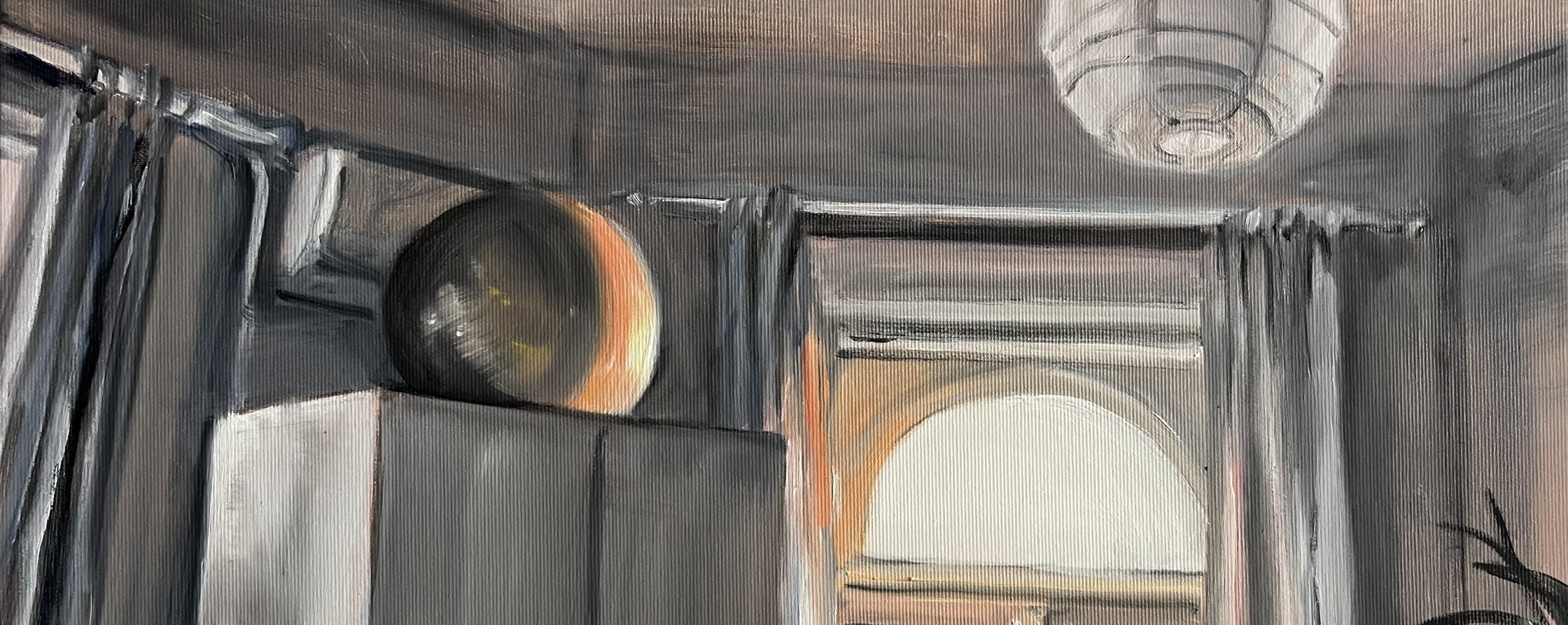 A Négy fal között című festménysorozat a szülés utáni posztpartum időszakból építkezik, amelyet néhány hónapig a gyermekágyi depresszió felfokozott érzékenységgel átélt tapasztalata jellemez. Az ábrázolt lakásunk belső terei nem csak enteriőrök, hanem az izoláció és időérzékelés változásának hordozói, egy átmeneti élethelyzet lenyomatai. A kisméretű festményekben hangsúlyossá válik a fény, az árnyék, a napszakok váltakozása, amelyek tovább erősítik a terek csendes, belsőséges karakterét. A rendetlen, kaotikus enteriőröket ábrázoló munkákkal szemben ez a sorozat nyugodtabb, visszafogottabb, letisztultabb, befelé forduló, az átmeneti alkotói állapot lenyomata.