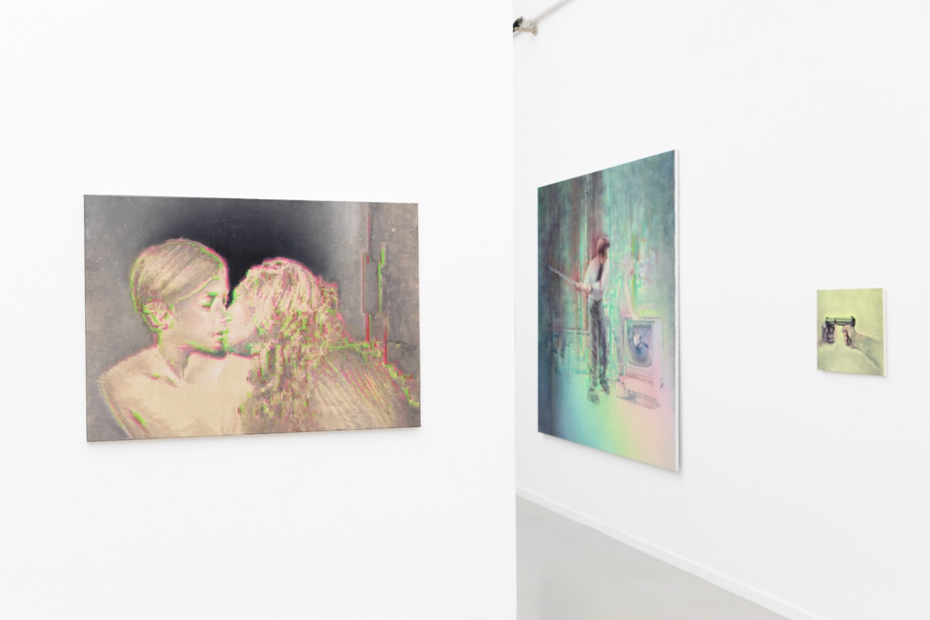 Monumentális műve, az Escape, első ránézésre egy pasztellszínekben úszó igéző tájkép. Közelebbről vizsgálva azonban inkább kísérteties, ahogy a valóságból a digitális világba – vagy éppen onnan – menekülő emberek csoportja keresi új helyét, valahol a látómezőn túl. Ez a mű, mint ahogy a kiállításon szereplő többi festmény is, titkokkal és feszültségekkel telített. Az egymással szembeforduló pisztolypár, egy zsebbe nyúló kéz, a függöny mögött várakozó és hajkorona mögé bújtatott rejtelmes nőalak, vagy a felismerhető képi elemek spontán absztrakcióba fordulása, a térből és időből kiszakított pillanatot és annak megfoghatatlanságát idézi.